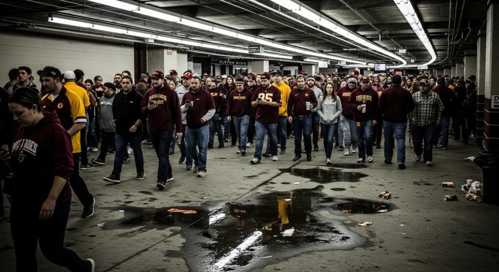 College venues are often decades old, with narrow aisles and steep concrete stairs lacking modern safety features. Combined with dense crowds, these conditions create significant slip and fall risks. When fans rush to seats or surge forward during touchdowns, inadequate guardrails or lighting can cause serious falls.